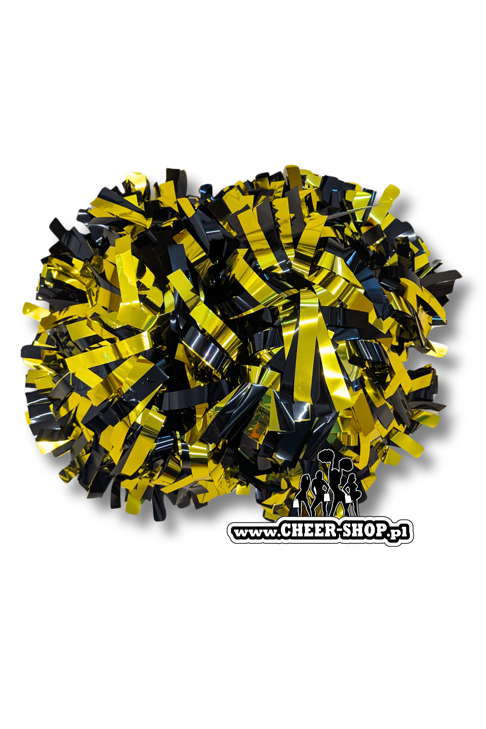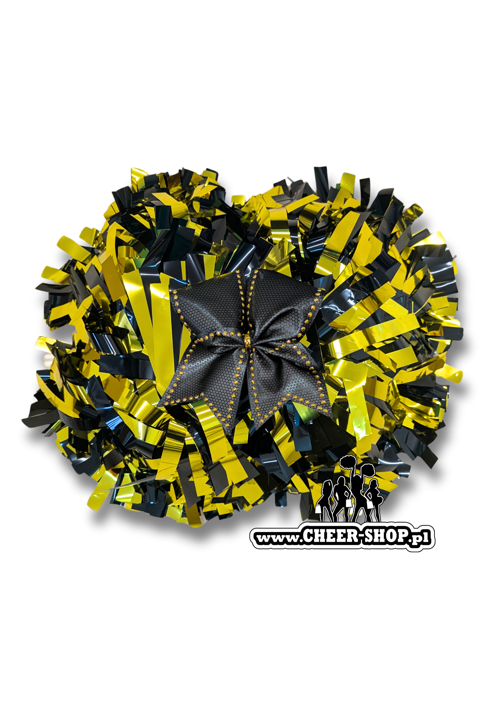 Zestaw dwóch pomponów z kokardą w kolorze złotym i czarnym podbije każdą scenę, zwłaszcza podczas występów tematycznych! 💛🖤