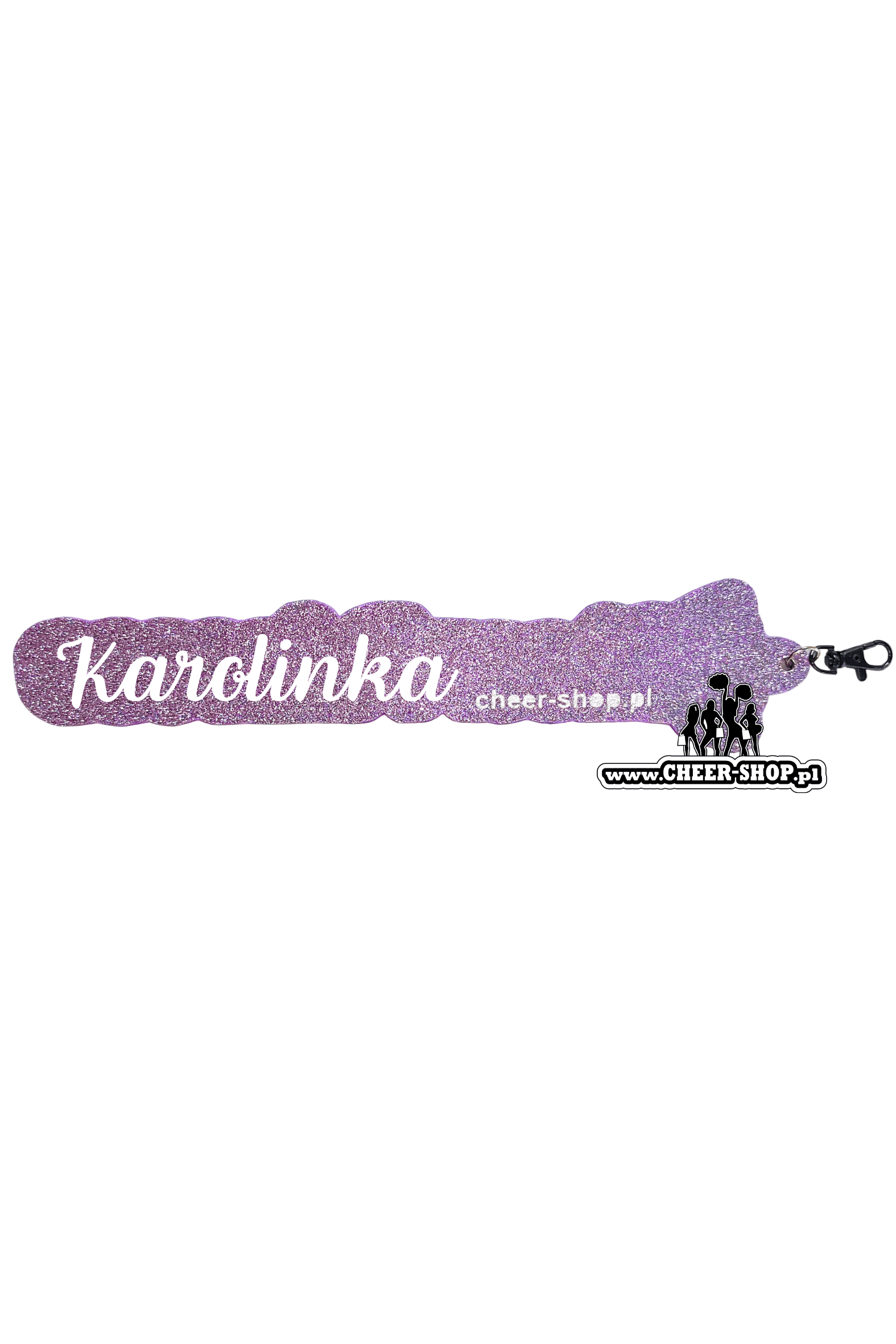 Produkt oferuje personalizację, co oznacza możliwość umieszczenia imienia z tyłu breloka. Dodatkowo można samodzielnie wybrać kolory brokatów, tworząc brelok idealnie dopasowany do stylu cheerleaderki. Jeśli chcesz inne kolory w breloku, to napisz do nas w komentarzu do zamówienia lub mailowo.