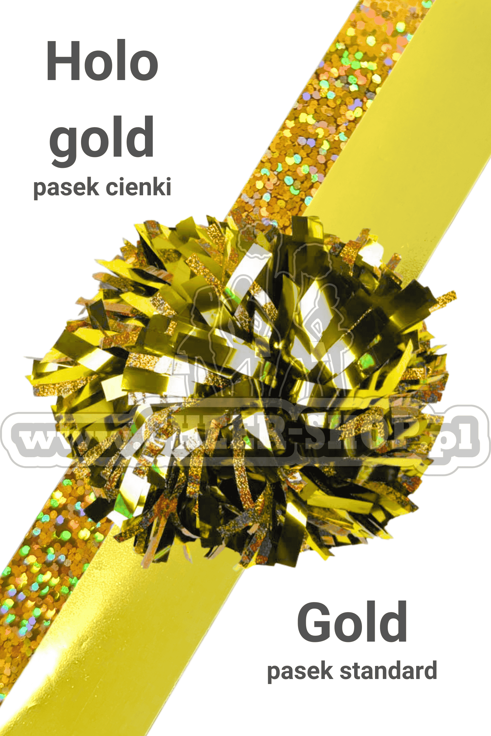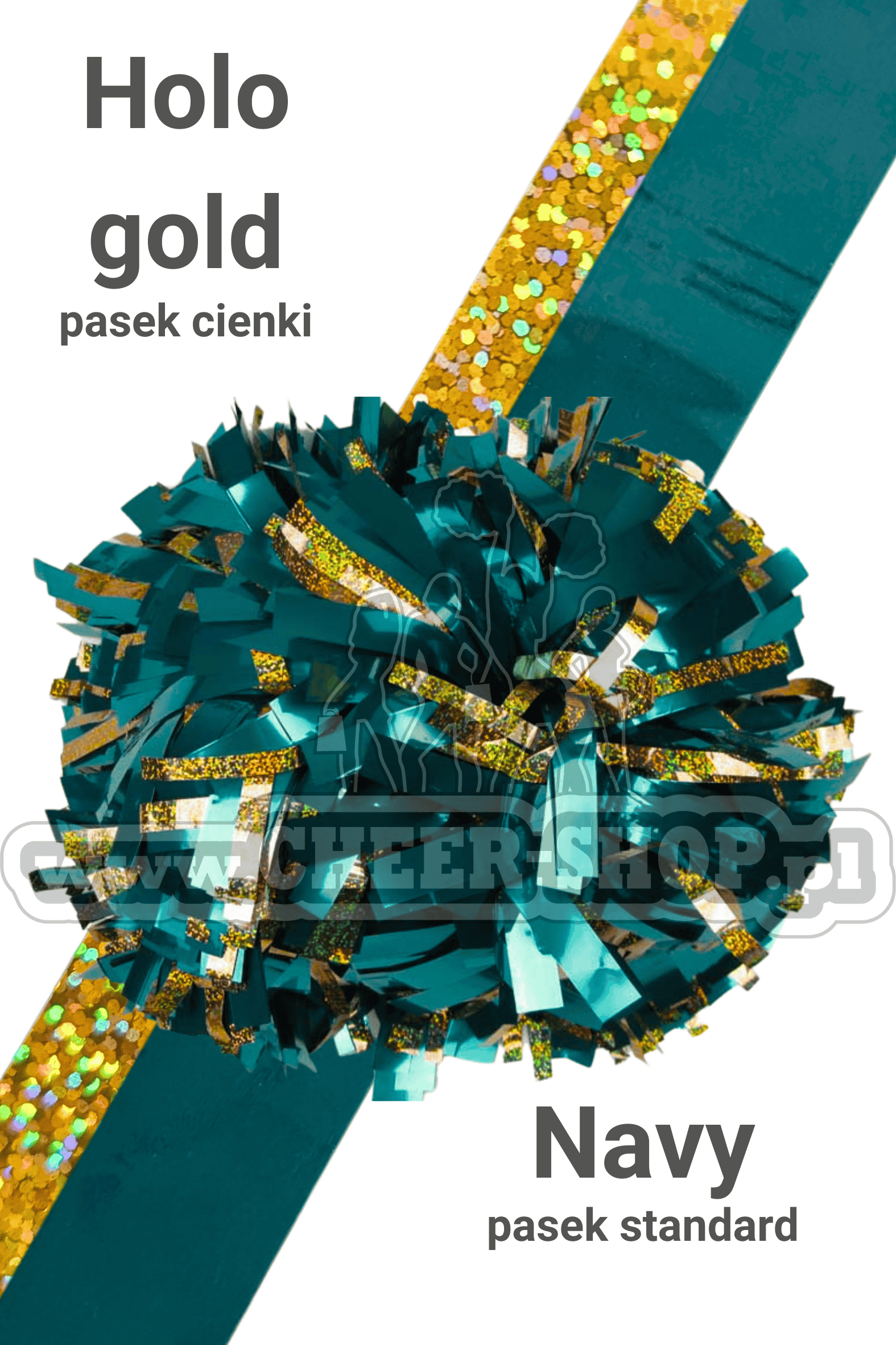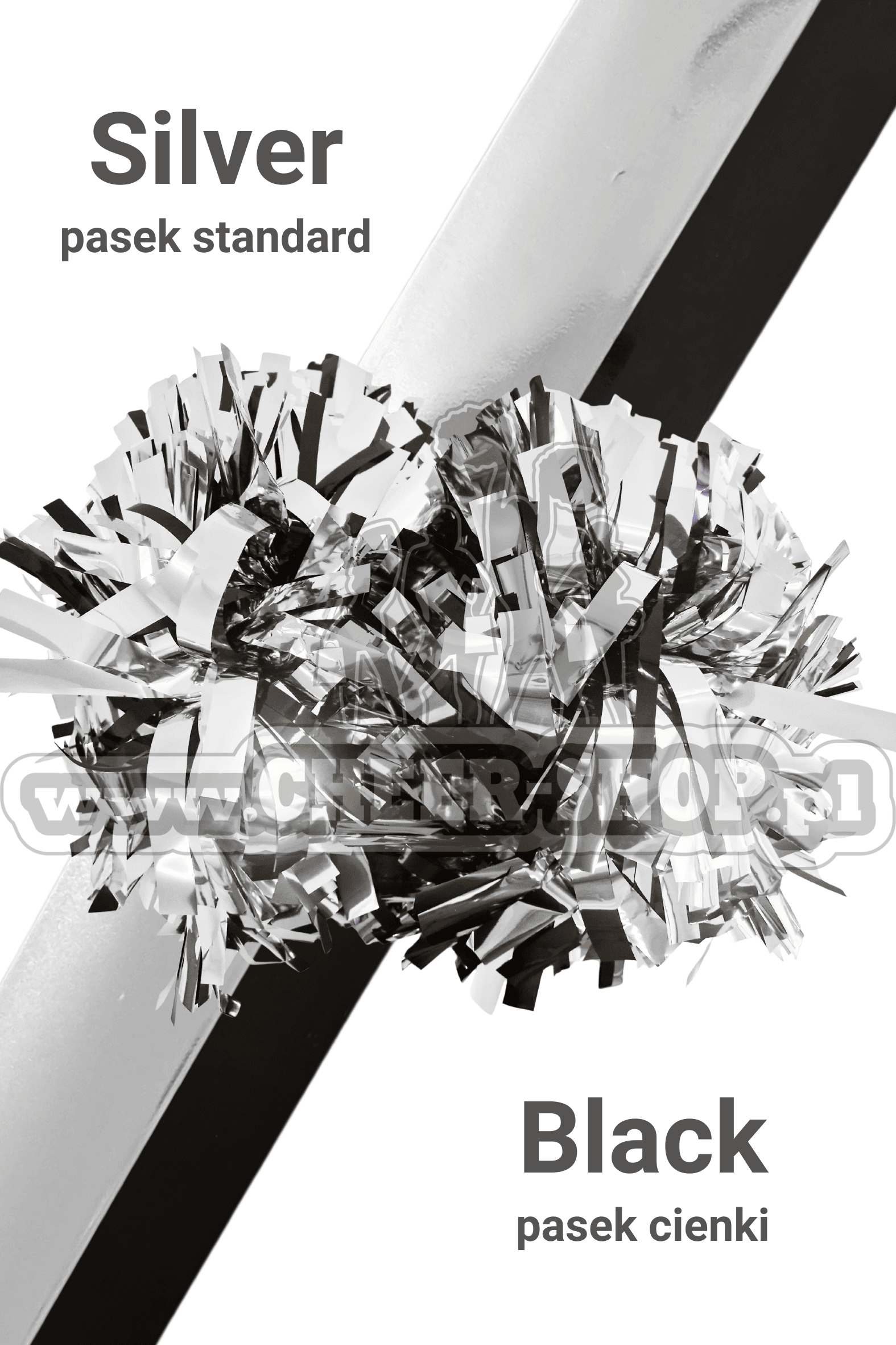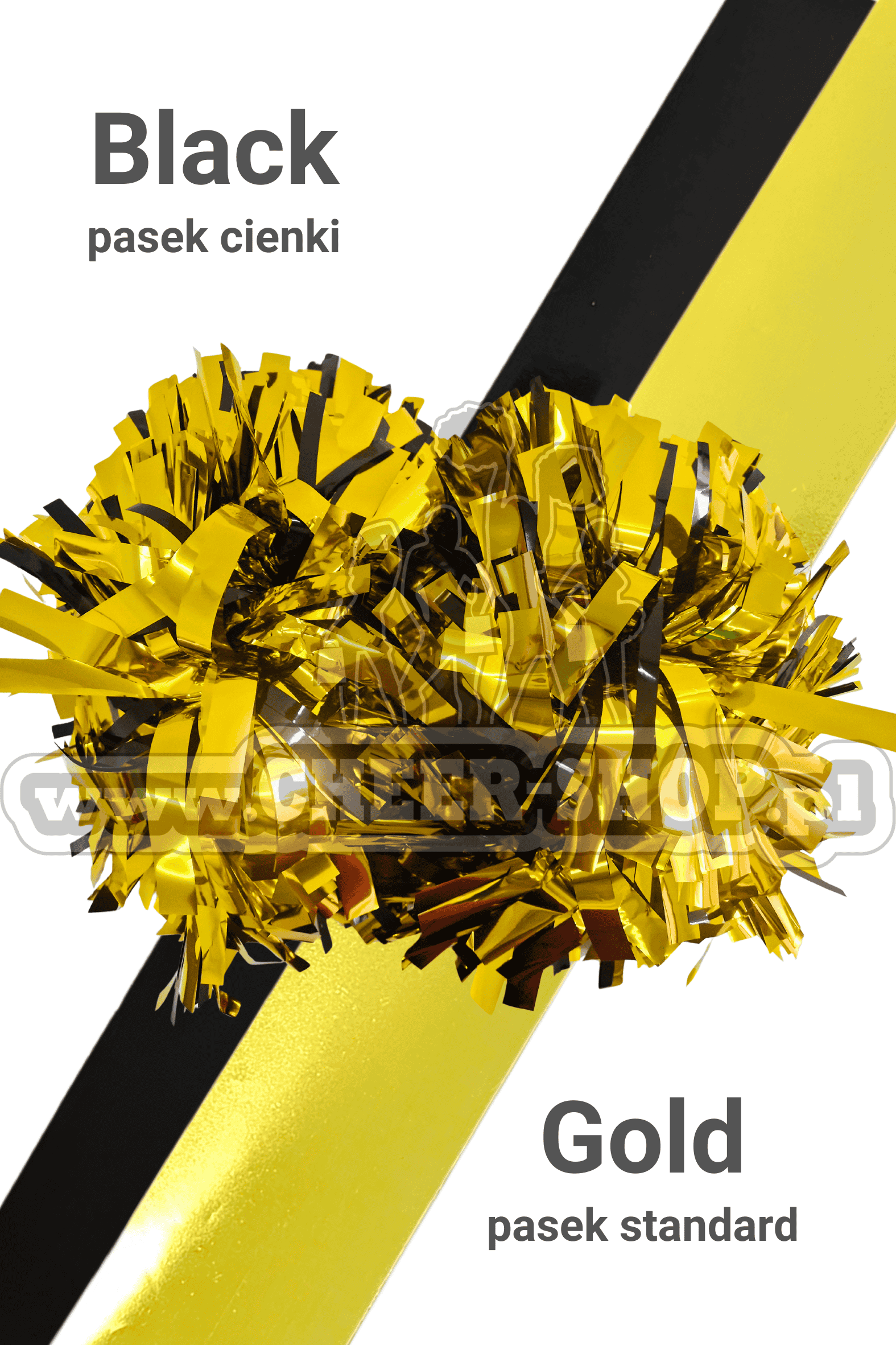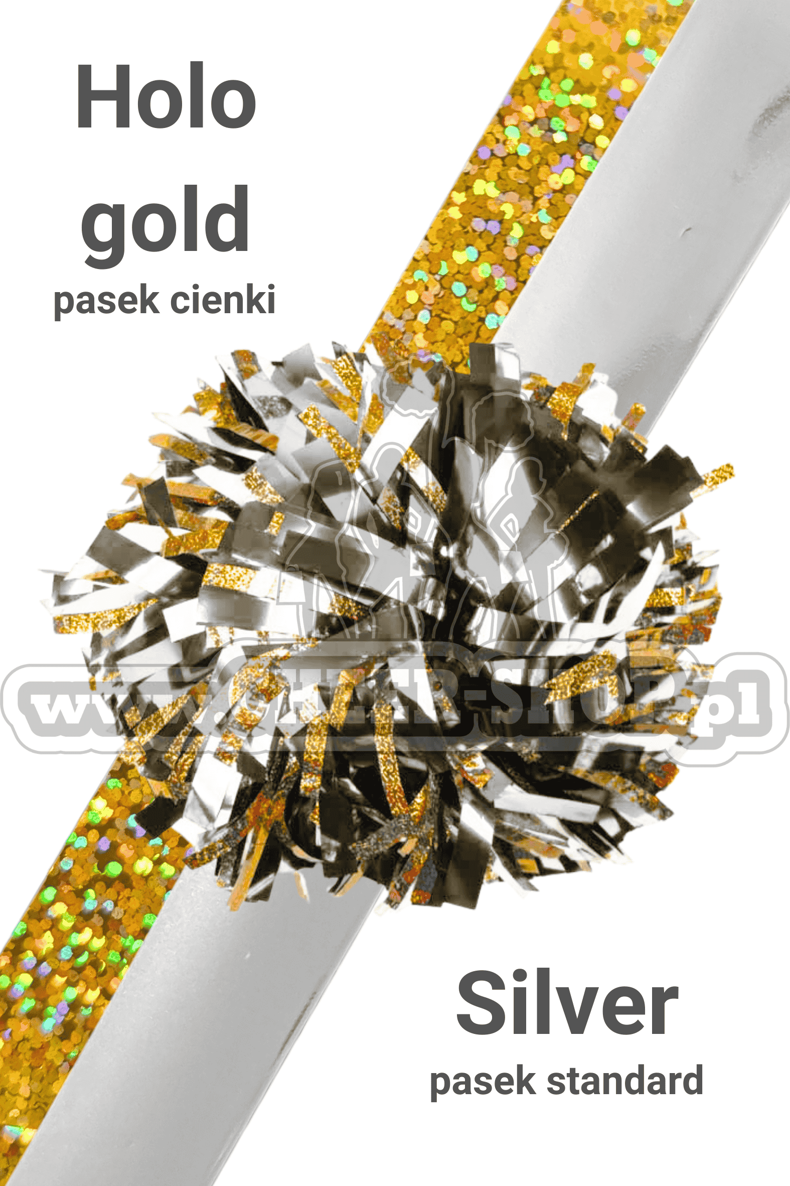 Pompon metallic z dodatkowymi cienkimi paskami, to świetna opcja dla drużyn, które: z jednej strony nie chcą jednokolorowych pomponów, ale z drugiej mieszanie dwóch kolorów nie pasuje im do strojów lub pokazów. Dlatego też dodanie cieńszych pasków w kolorze złota lub srebra jest świetnym rozwiązaniem, bo dodają dodatkowego błysku. Kolory naszych pomponów są bardzo wyraziste, ponieważ kolor znajduje się po obu stronach każdego paska. Dlatego tak chętnie zamawiane są przez profesjonalne i amatorskie drużyny cheerleaderek i mażoretek.