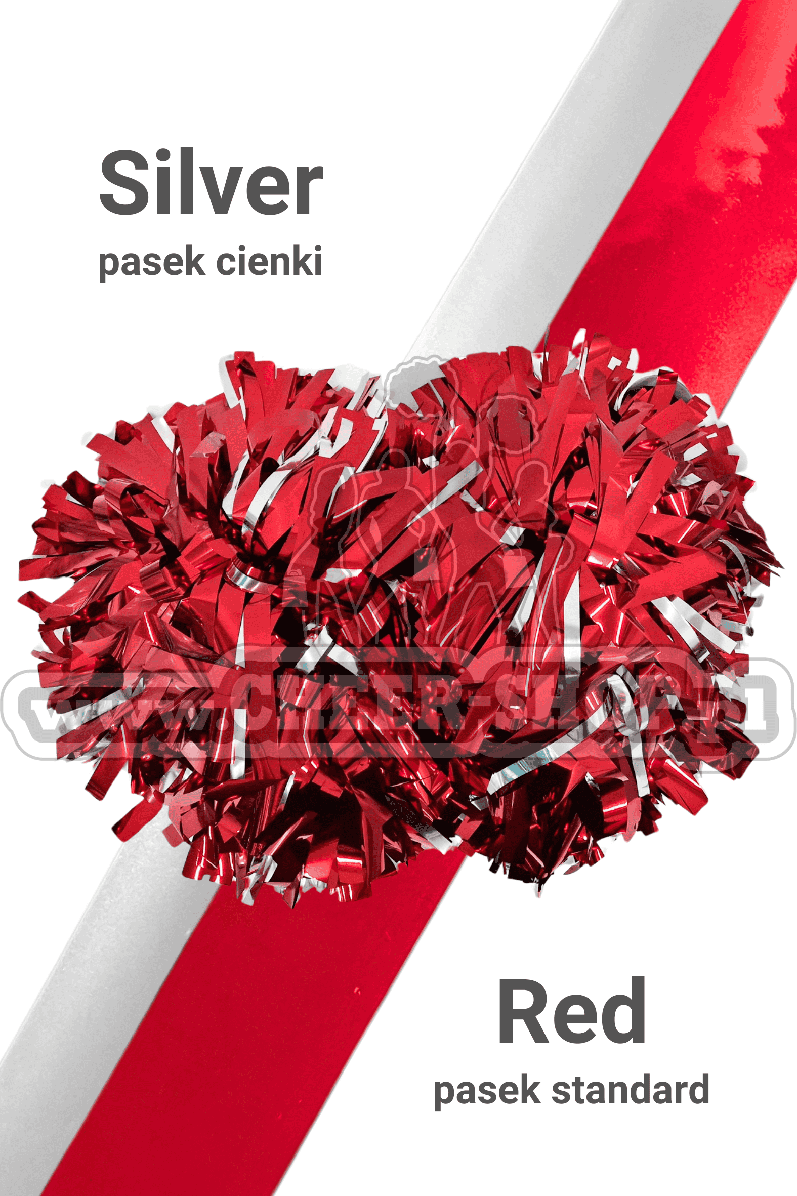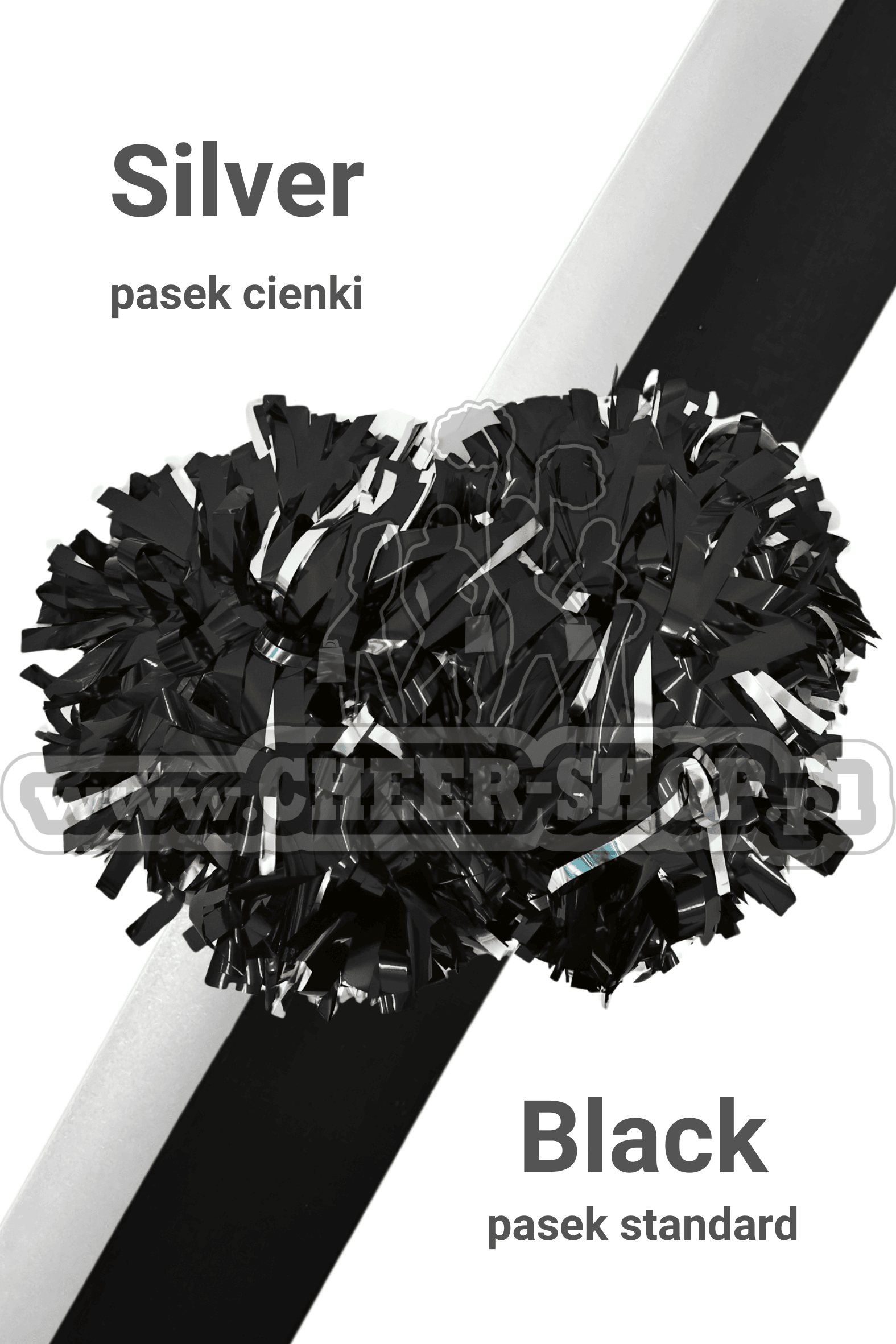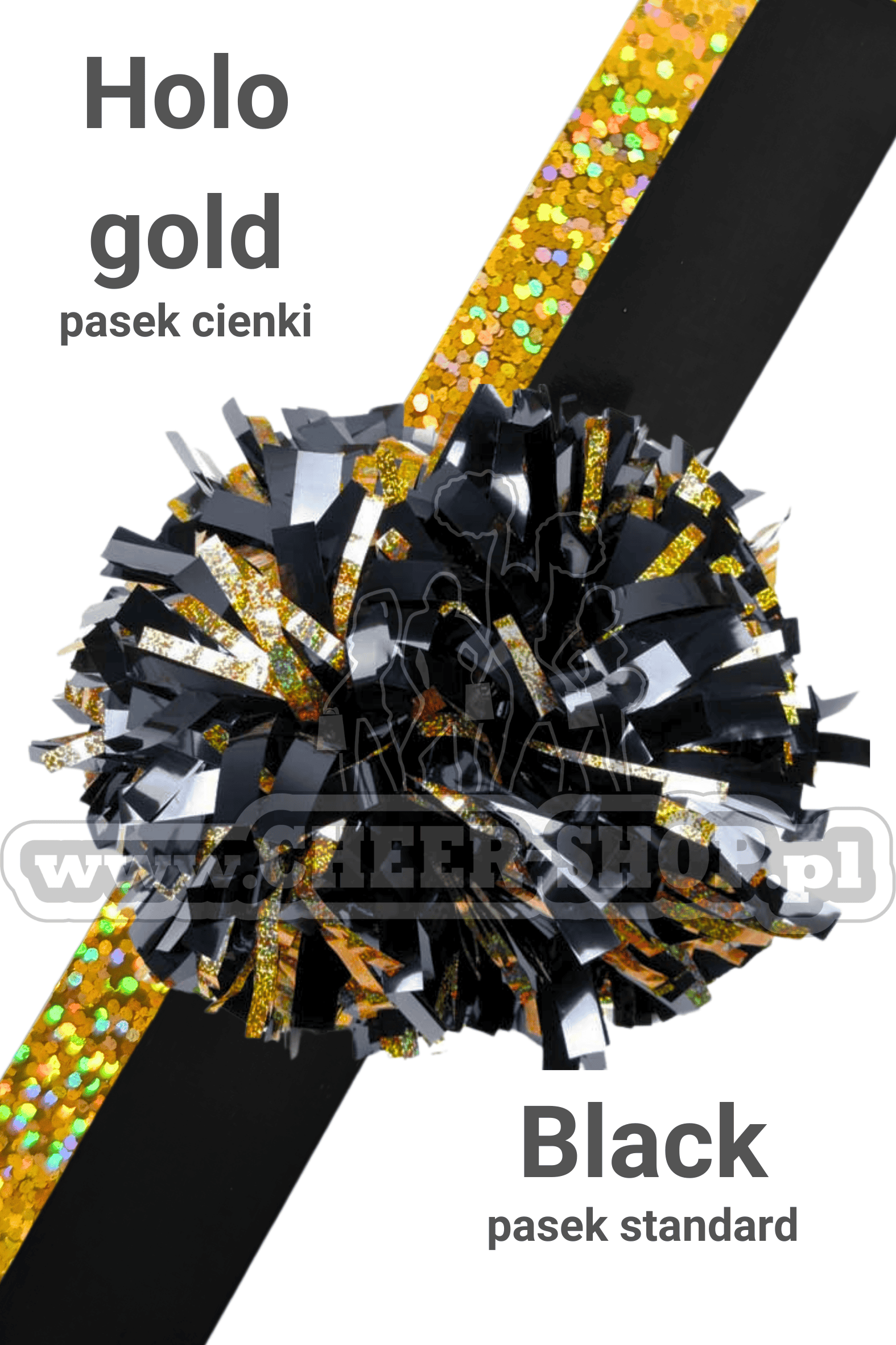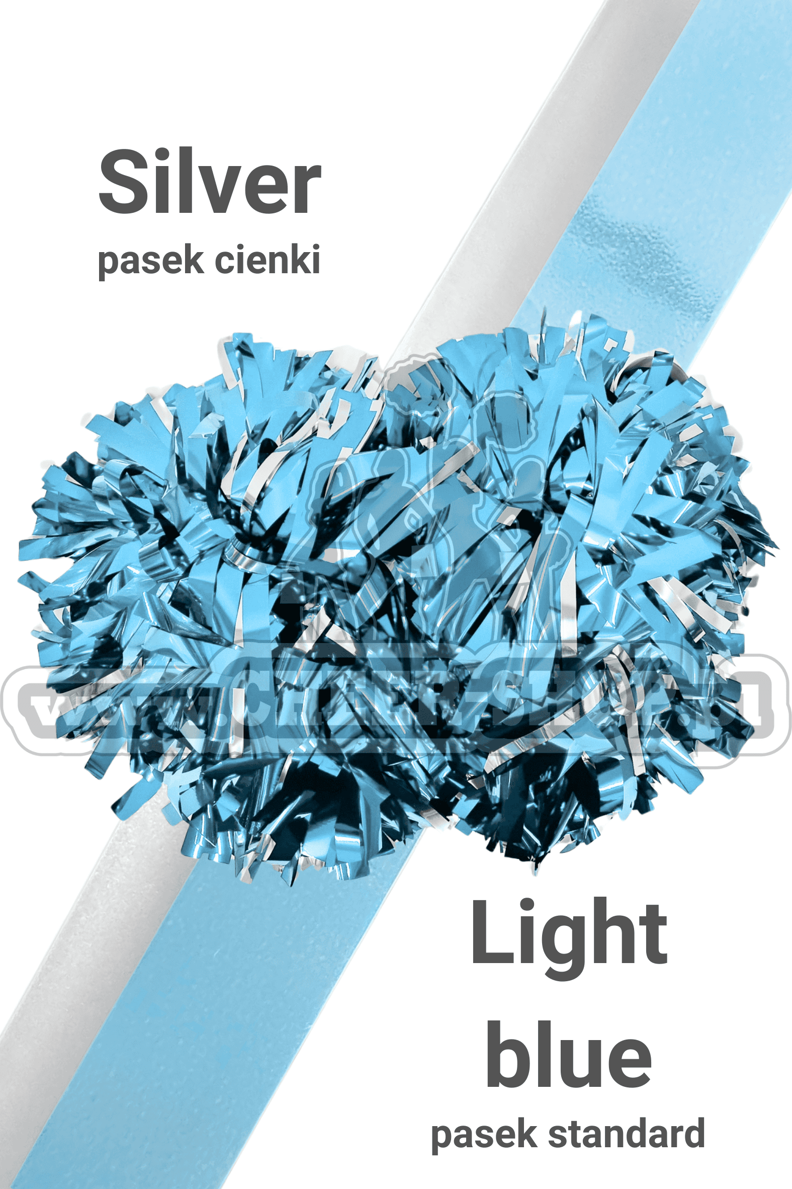 Pompon metallic z dodatkowymi cienkimi paskami, to świetna opcja dla drużyn, które: z jednej strony nie chcą jednokolorowych pomponów, ale z drugiej mieszanie dwóch kolorów nie pasuje im do strojów lub pokazów. Dlatego też dodanie cieńszych pasków w kolorze złota lub srebra jest świetnym rozwiązaniem, bo dodają dodatkowego błysku. Kolory naszych pomponów są bardzo wyraziste, ponieważ kolor znajduje się po obu stronach każdego paska. Dlatego tak chętnie zamawiane są przez profesjonalne i amatorskie drużyny cheerleaderek i mażoretek.