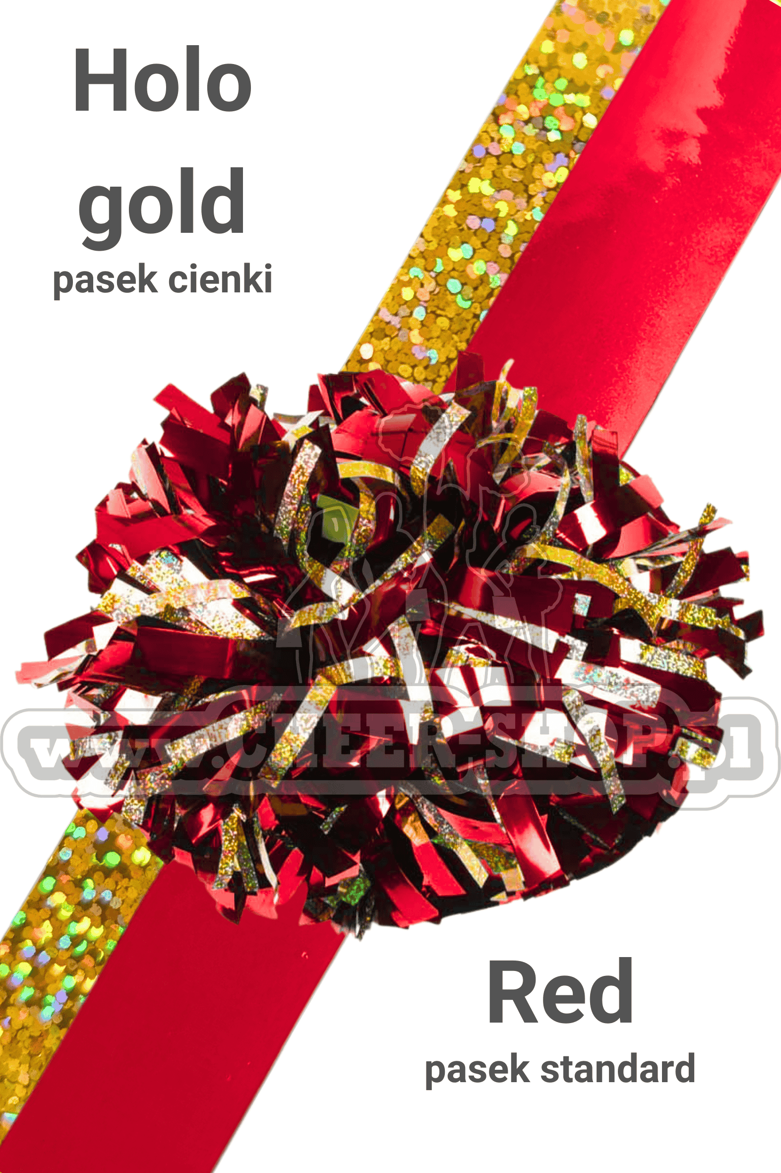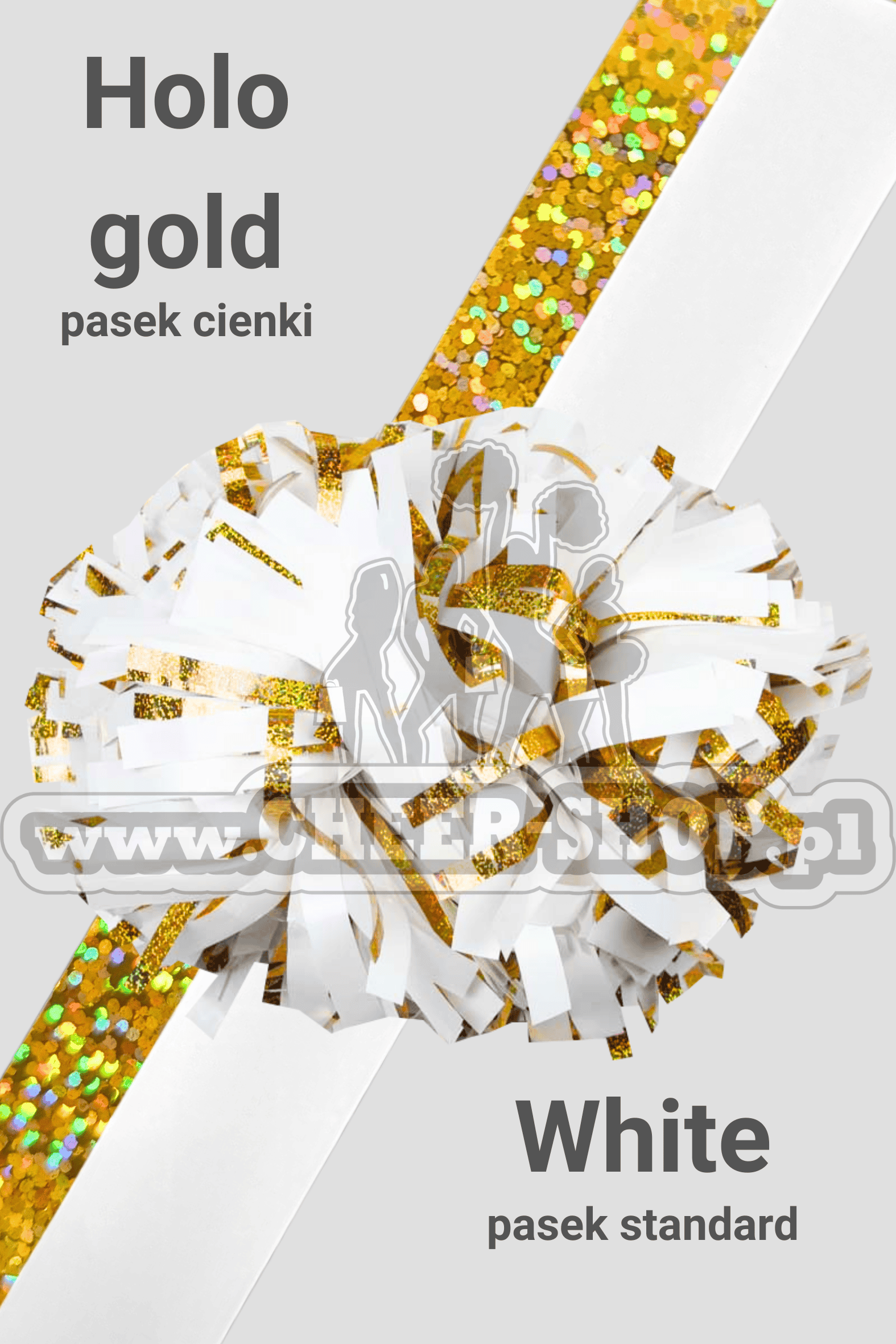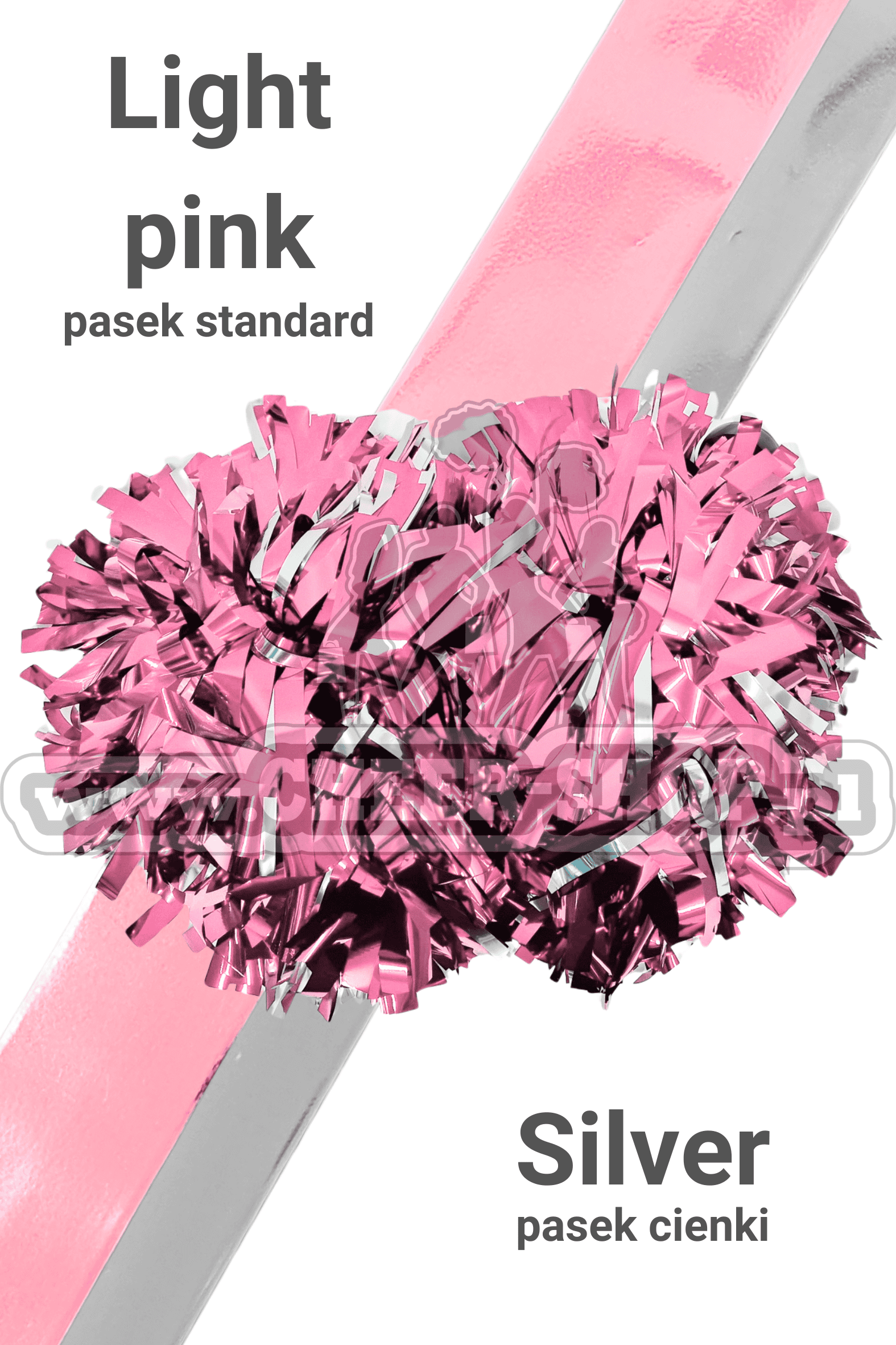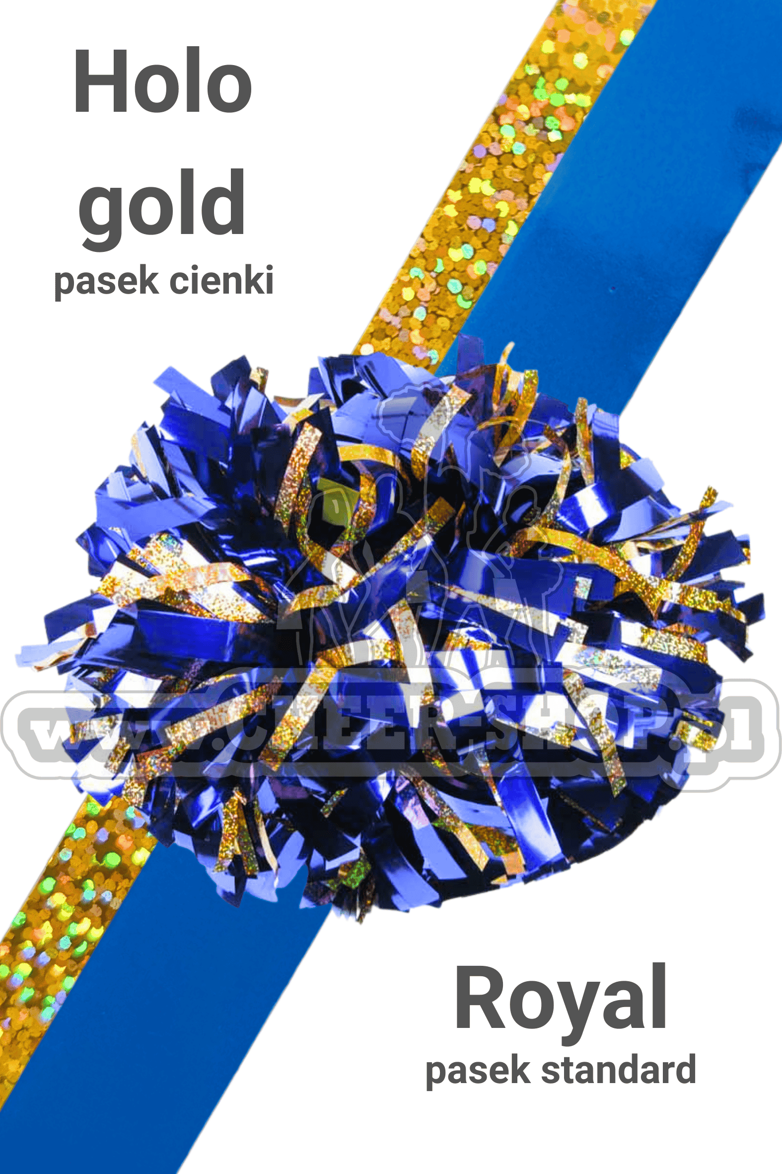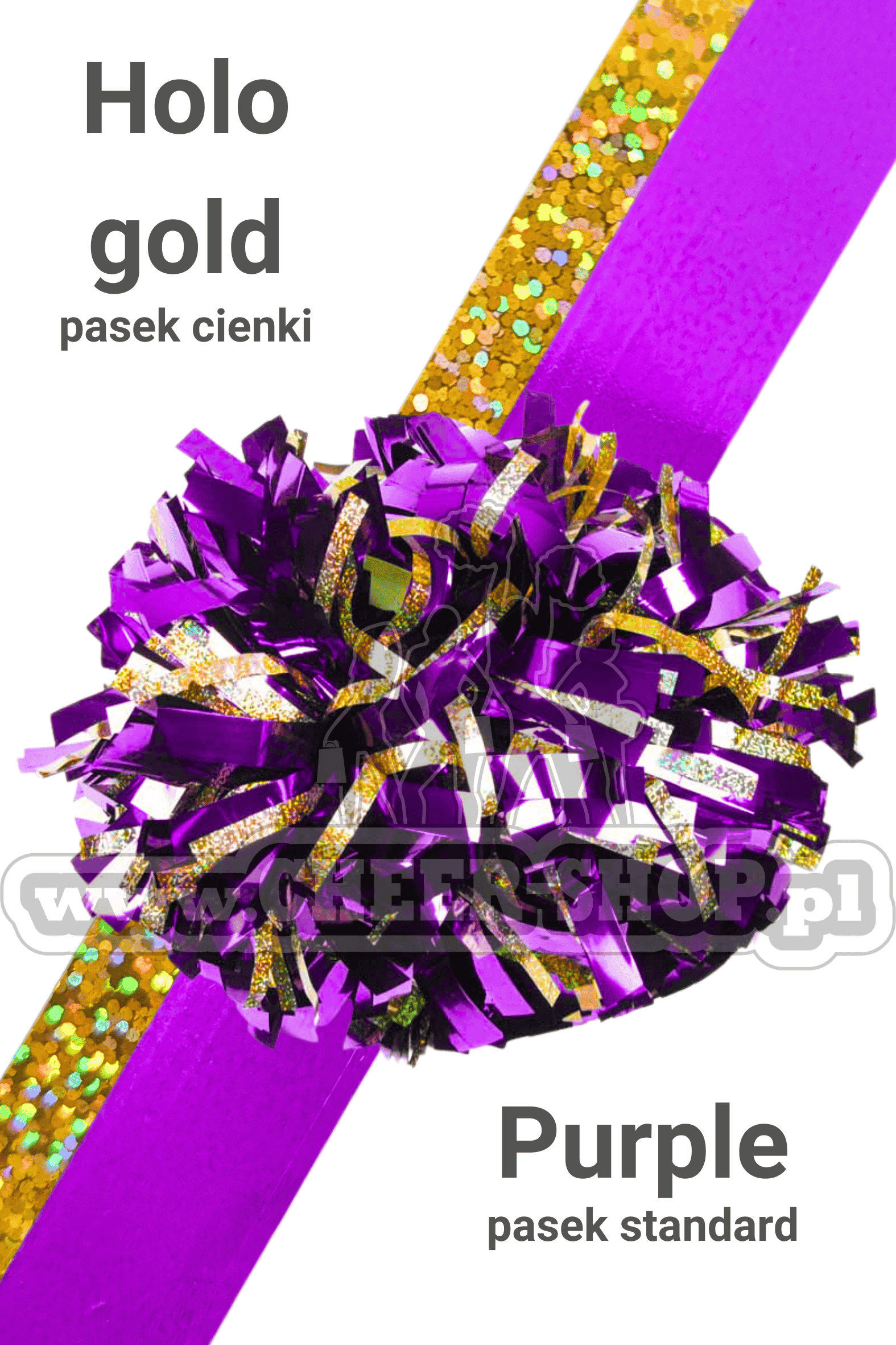 Pompon metallic z dodatkowymi cienkimi paskami, to świetna opcja dla drużyn, które: z jednej strony nie chcą jednokolorowych pomponów, ale z drugiej mieszanie dwóch kolorów nie pasuje im do strojów lub pokazów. Dlatego też dodanie cieńszych pasków w kolorze złota lub srebra jest świetnym rozwiązaniem, bo dodają dodatkowego błysku. Kolory naszych pomponów są bardzo wyraziste, ponieważ kolor znajduje się po obu stronach każdego paska. Dlatego tak chętnie zamawiane są przez profesjonalne i amatorskie drużyny cheerleaderek i mażoretek.
