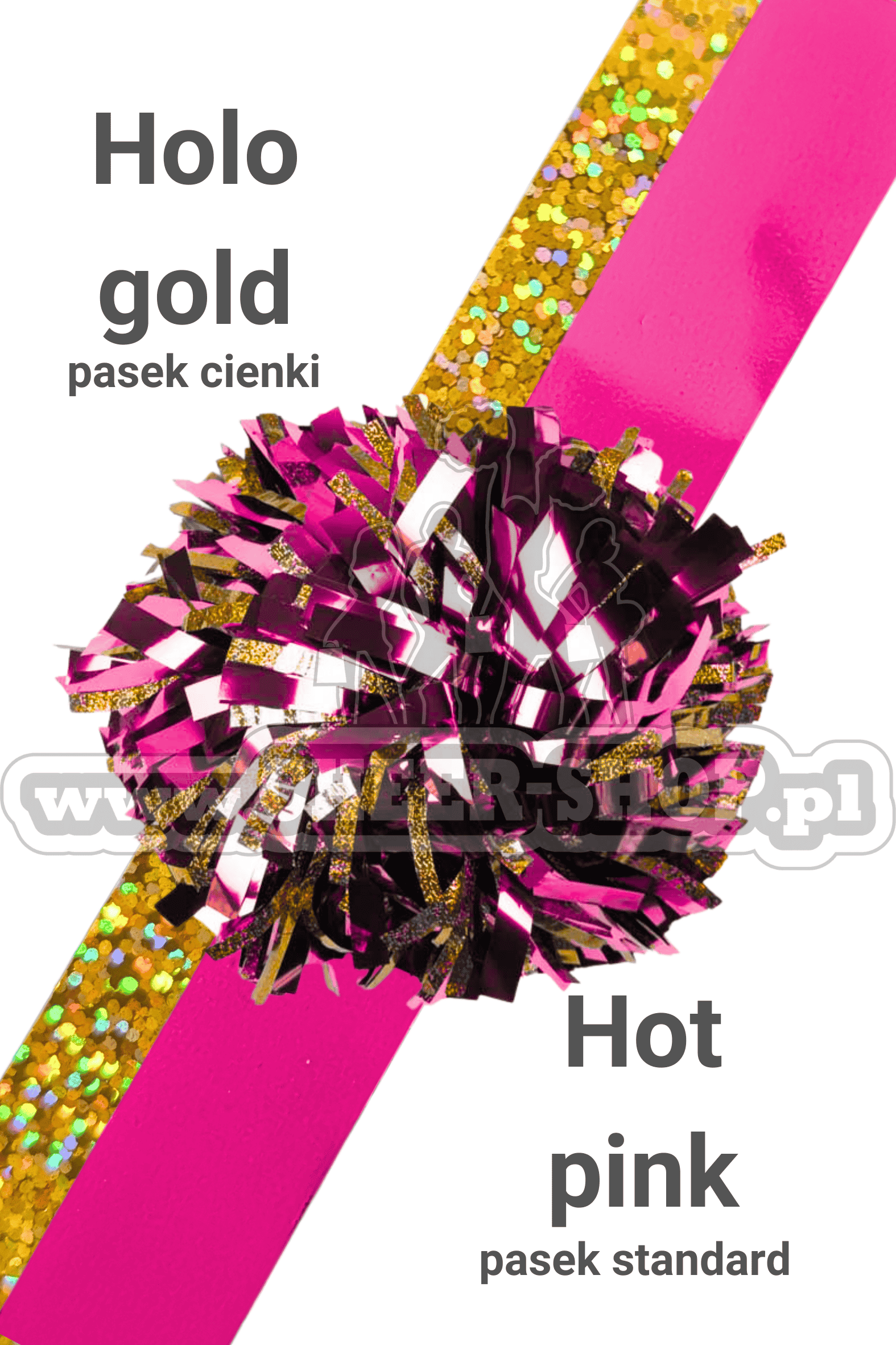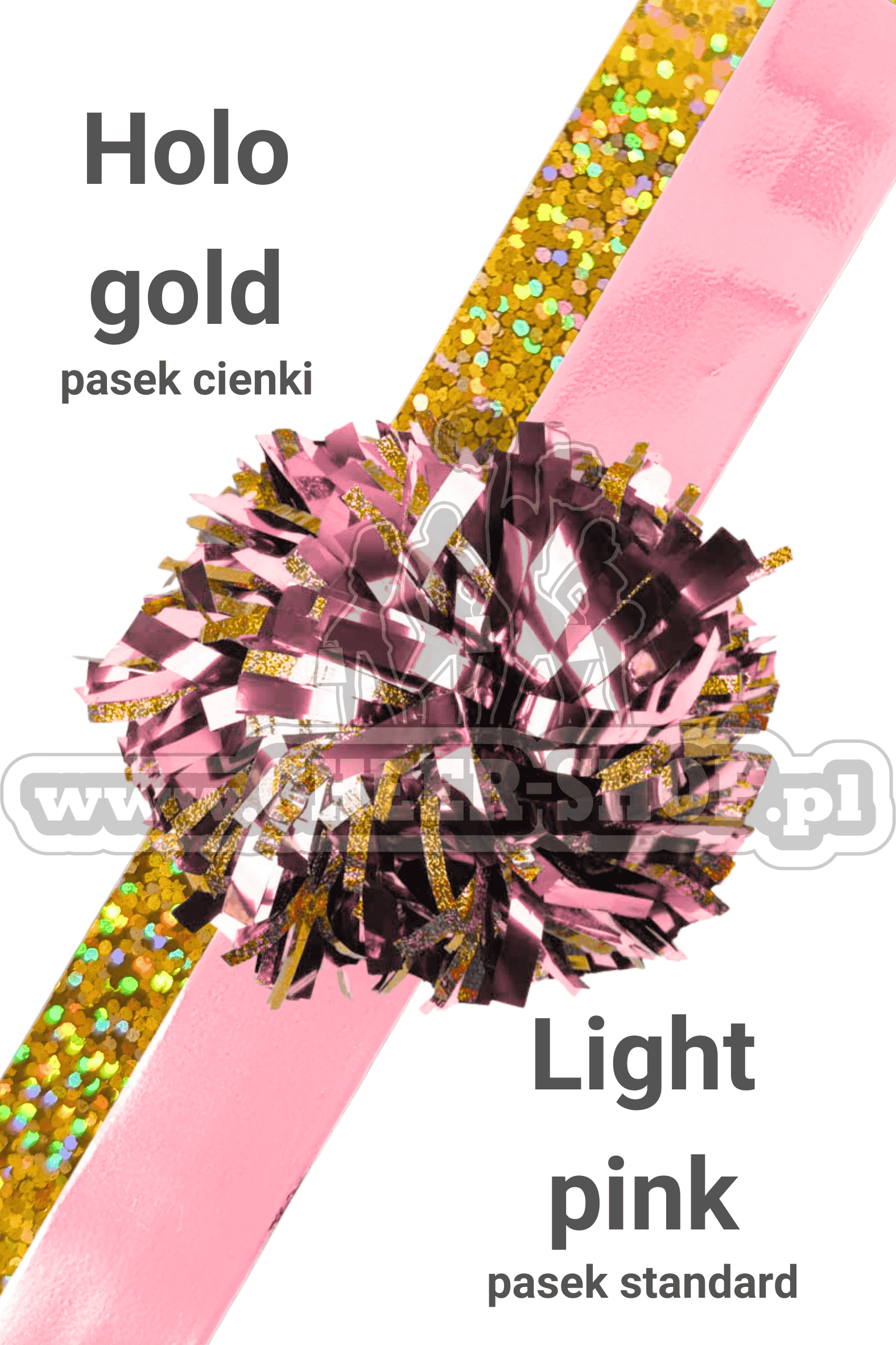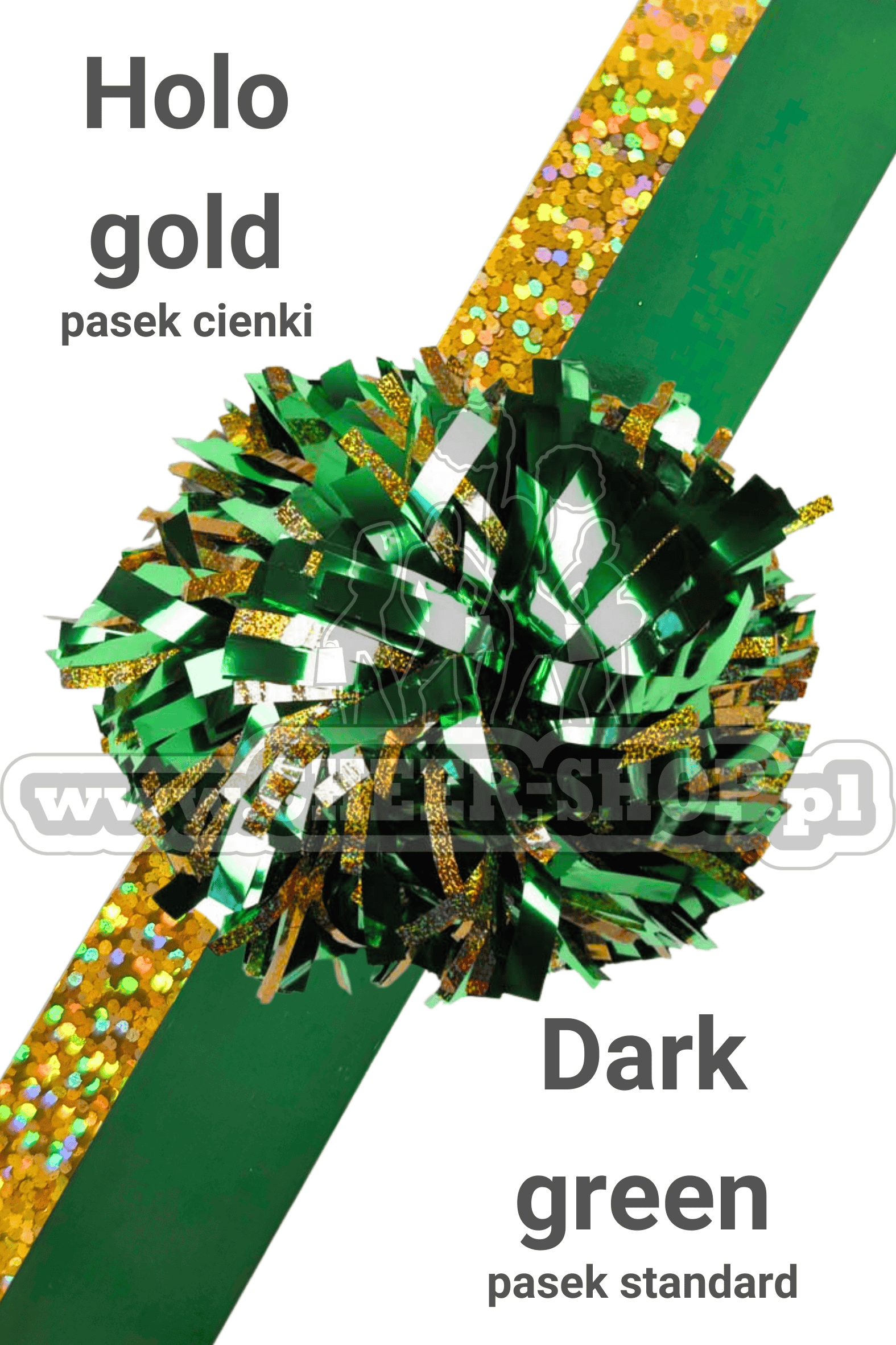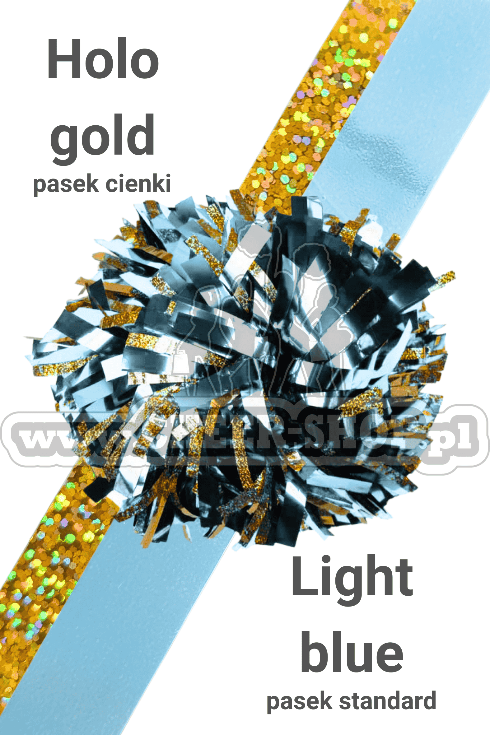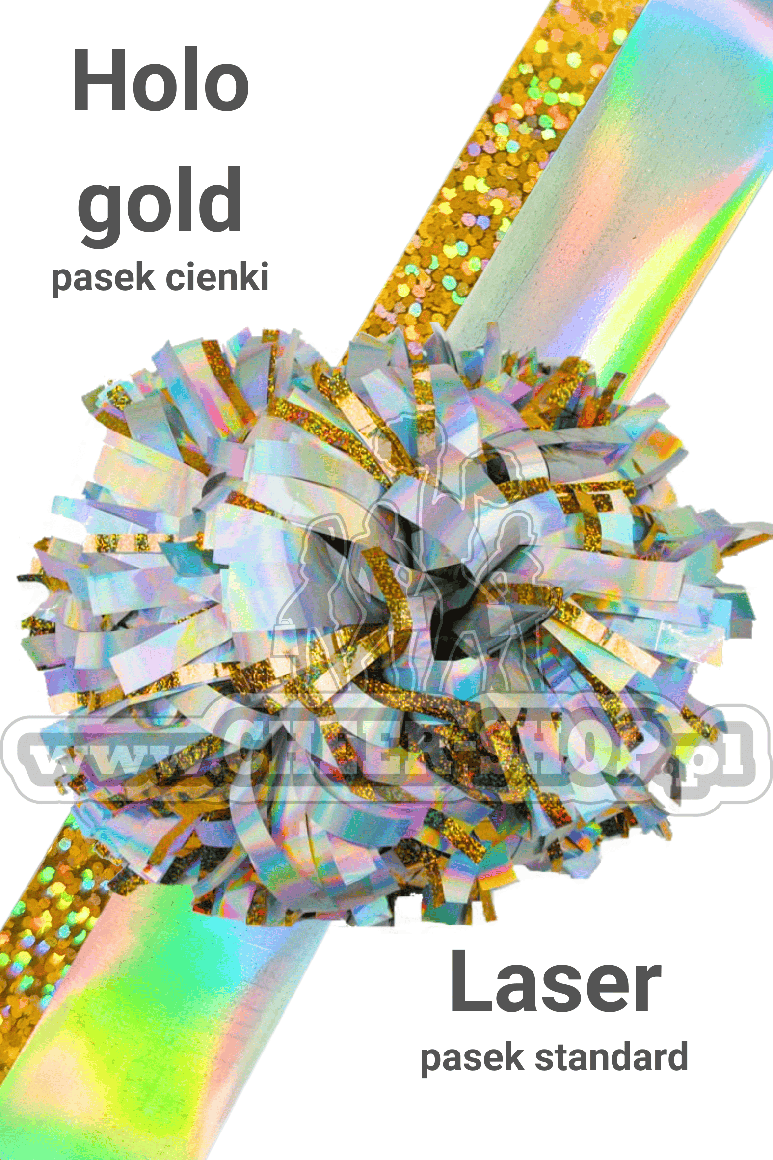 Pompon metallic z dodatkowymi cienkimi paskami, to świetna opcja dla drużyn, które: z jednej strony nie chcą jednokolorowych pomponów, ale z drugiej mieszanie dwóch kolorów nie pasuje im do strojów lub pokazów. Dlatego też dodanie cieńszych pasków w kolorze złota lub srebra jest świetnym rozwiązaniem, bo dodają dodatkowego błysku. Kolory naszych pomponów są bardzo wyraziste, ponieważ kolor znajduje się po obu stronach każdego paska. Dlatego tak chętnie zamawiane są przez profesjonalne i amatorskie drużyny cheerleaderek i mażoretek.